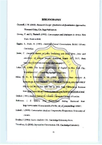 Penelitian ini difokuskan pada casual consersation digunakan oleh mahasiswa laki-laki fakultas sastra, universitas Katolik Soegijapranata . Casual conversation adalah percakapan yang terjadi secara spontan dan alami yang memiliki struktur dan karakteristik yang membentuknya