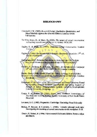 Casual consersation terjadi dalam kehidupan sehari-hari. Jenis percakapan spontan, alamiah tersebut ternyata memiliki struktur, karakteristik yang membentuknya. Orang yang berbicara tidak mengacu pada struktur untuk berkomunikasi. Namun struktur dan karakteristik secara tidak sadar masuk dalam percakapan.