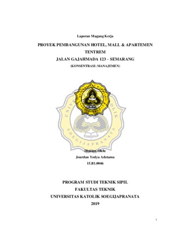 Yodya Adetama, Jourdan (2019) PROYEK PEMBANGUNAN HOTEL, MALL & APARTEMEN TENTREM JALAN GAJAHMADA 123 – SEMARANG (KONSENTRASI: MANAJEMEN). Project Report. FAKULTAS TEKNIK, UNIKA SOEGIJAPRANATA SEMARANG, SEMARANG. (Unpublished)