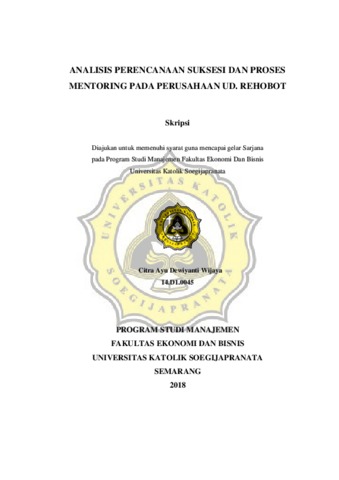 ANALISIS PERENCANAAN SUKSESI DAN PROSES MENTORING PADA PERUSAHAAN UD. REHOBOT