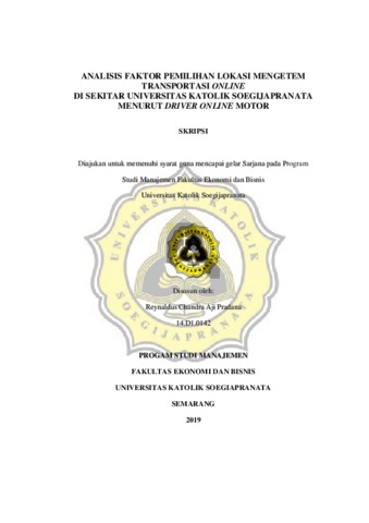 Pradana, Reynaldus Chandra Aji (2019) ANALISIS FAKTOR PEMILIHAN LOKASI MENGETEM TRANSPORTASI ONLINE DI SEKITAR UNIVERSITAS KATOLIK SOEGIJAPRANATA MENURUT DRIVER ONLINE MOTOR. Other thesis, UNIKA SOEGIJAPRANATA SEMARANG.