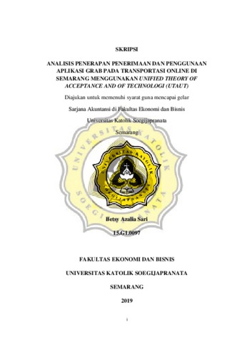 Sari, Betsy Azalia (2019) ANALISIS PENERAPAN PENERIMAAN DAN PENGGUNAAN APLIKASI GRAB PADA TRANSPORTASI ONLINE DI SEMARANG MENGGUNAKAN UNIFIED THEORY OF ACCEPTANCE AND OF TECHNOLOGI (UTAUT). Other thesis, UNIKA SOEGIJAPRANATA SEMARANG.