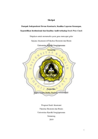 Baskara, Septa Ananta Bobby (2019) Dampak Independensi Dewan Komisaris, Kualitas Laporan Keuangan, Kepemilikan Institusional dan Kualitas Audit terhadap Stock Price Crash. Other thesis, UNIKA SOEGIJAPRANATA SEMARANG.