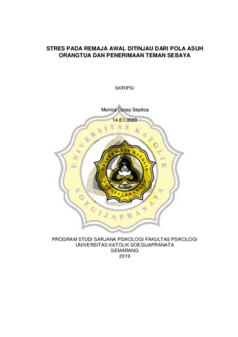 Septica, Monica Cossy (2019) STRES PADA REMAJA AWAL DITINJAU DARI POLA ASUH ORANGTUA DAN PENERIMAAN TEMAN SEBAYA. Other thesis, UNIKA SOEGIJAPRANATA SEMARANG.