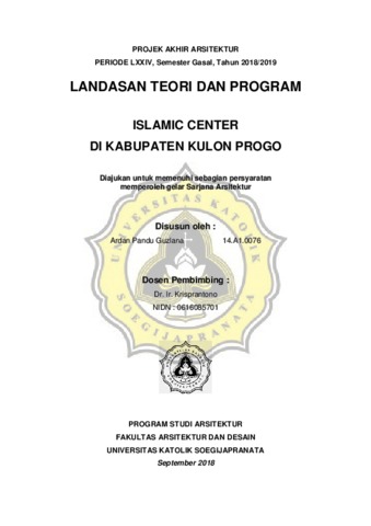 Guzlana, Ardan Pandu (2019) ISLAMIC CENTER DI KABUPATEN KULON PROGO. Other thesis, UNIKA SOEGIJAPRANATA SEMARANG.