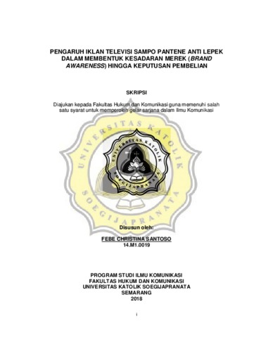 SANTOSO, FEBE CHRISTINA (2019) PENGARUH IKLAN TELEVISI SAMPO PANTENE ANTI LEPEK DALAM MEMBENTUK KESADARAN MEREK (BRAND AWARENESS) HINGGA KEPUTUSAN PEMBELIAN. Other thesis, UNIKA SOEGIJAPRANATA SEMARANG.