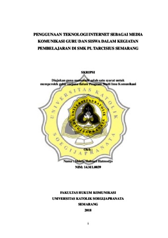 Hatmodjo, Shinta Habsari (2019) PENGGUNAAN TEKNOLOGI INTERNET SEBAGAI MEDIA KOMUNIKASI GURU DAN SISWA DALAM KEGIATAN PEMBELAJARAN DI SMK PL TARCISIUS SEMARANG. Other thesis, UNIKA SOEGIJAPRANATA SEMARANG.