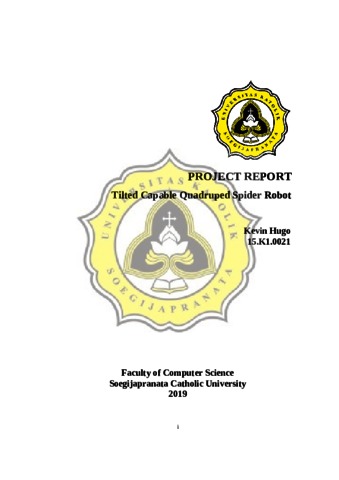 Hugo, Kevin (2019) Tilted Capable Quadruped Spider Robot. Other thesis, UNIKA SOEGIJAPRANATA SEMARANG.