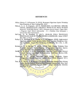 CALVIEN, CALVIEN (2019) DATA ANALYSIS OF TRANSACTION ITEMS USING APRIORI ALGORITHM. Other thesis, UNIKA SOEGIJAPRANATA SEMARANG.