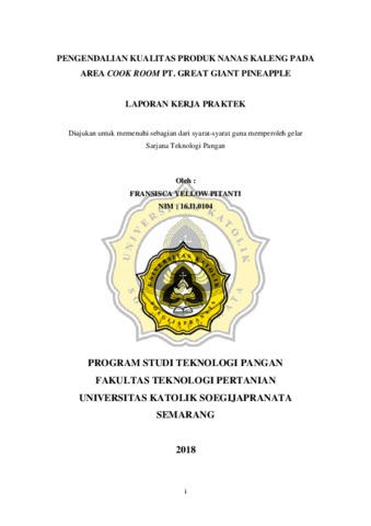 PITANTI, FRANSISCA YELLOW PENGENDALIAN KUALITAS PRODUK NANAS KALENG PADA AREA COOK ROOM PT. GREAT GIANT PINEAPPLE. Project Report. Unika Soegijapranata Semarang, Semarang.