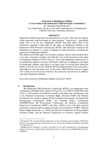 NURHAYATI, BERNADETA RESTI (2017) Protection to Illegitimate Children (A Case Study at the Indonesian Child Protection Commission). Protection to Illegitimate Children.