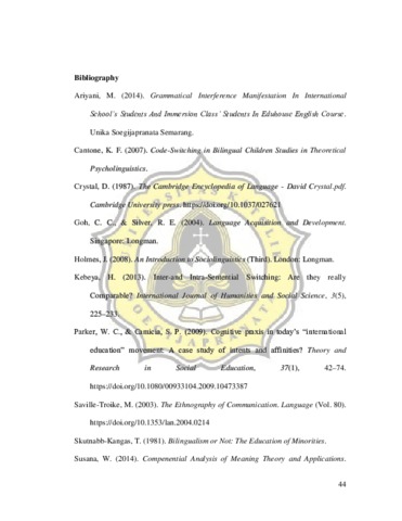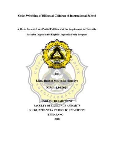 Handoyo, Liem, Rachel Mellynda (2019) Code-Switching of Bilingual Children of International School. Other thesis, UNIKA SOEGIJAPRANATA SEMARANG.