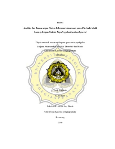 Alifianto, Yuda (2019) Analisis dan Perancangan Sistem Informasi Akuntansi pada CV. Indo Multi Konsep dengan Metode Rapid Application Development. Other thesis, UNIKA SOEGIJAPRANATA SEMARANG.