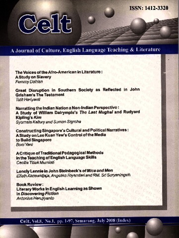 MURNIATI, CECILIA TITIEK (2008) A CRITIQUE OF TRADITIONAL PEDAGOGICAL METHODS IN THE TEACHING OF ENGLISH LANGUAGE SKILLS. Celt: A Journal of Culture, English Language Teaching & Literature, 8 (1). pp. 59-75. ISSN 1412-3320