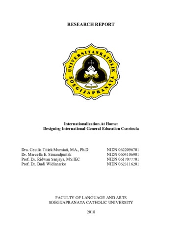 MURNIATI, CECILIA TITIEK and Widianarko, Y. Budi and Sanjaya, Ridwan and Simanjuntak, Marcella Elwina Internationalization at Home: Designing International General Education Curricula. Project Report. Universitas Katolik Soegijapranata. (Unpublished)