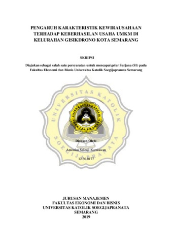 Kurniawan, Antonius Seloaji (2019) PENGARUH KARAKTERISTIK KEWIRAUSAHAAN TERHADAP KEBERHASILAN USAHA UMKM DI KELURAHAN GISIKDRONO KOTA SEMARANG. Other thesis, UNIKA SOEGIJAPRANATA SEMARANG.