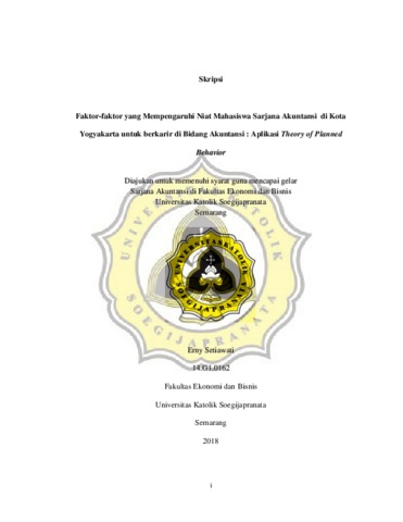 Setiawati, Erny (2019) Faktor-faktor yang Mempengaruhi Niat Mahasiswa Sarjana Akuntansi di Kota Yogyakarta untuk berkarir di Bidang Akuntansi : Aplikasi Theory of Planned Behavior. Other thesis, UNIKA SOEGIJAPRANATA SEMARANG.