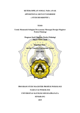 Tjokro, Adeska Chandra Constantina (2019) KETERAMPILAN SOSIAL PADA ANAK OPPOSITIONAL DEFIANT DISORDER ( STUDI DESKRIPTIF ). Other thesis, UNIKA SOEGIJAPRANATA SEMARANG.