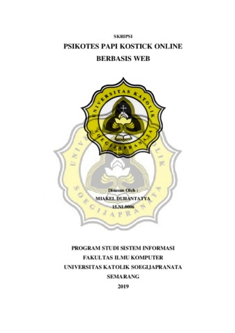DUHANTATYA, MIAKEL (2019) PSIKOTES PAPI KOSTICK ONLINE BERBASIS WEB. Other thesis, UNIKA SOEGIJAPRANATA SEMARANG.