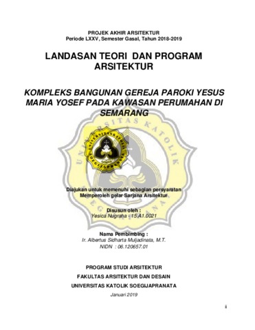 Nugraha, Yesica (2019) KOMPLEKS BANGUNAN GEREJA PAROKI YESUS MARIA YOSEF PADA KAWASAN PERUMAHAN DI SEMARANG. Other thesis, UNIKA SOEGIJAPRANATA SEMARANG.