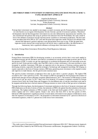 Rahutami, Angelina Ika and Kurniasari, Widuri (2019) ARE FOREIGN DIRECT INVESTMENT IN INDONESIA INFLUENCED BY POLITICAL RISK? A PANEL REGRESSION APPROACH. In: The 21st Malaysian Finance Association Conference 2019 (MFAC 2019), 31st July - 1st August 2019, Sunway University, Bandar Sunway, Selangor, Malaysia.