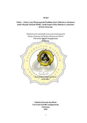 Kuncoro, Evan Gading Suharto (2019) Faktor – Faktor yang Mempengaruhi Pemilihan Karir Mahasiswa Akuntansi untuk Menjadi Akuntan Publik : Studi Empiris Pada Mahasiswa Akuntansi di Kota Semarang. Other thesis, UNIKA SOEGIJAPRANATA SEMARANG.