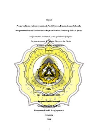 Valentina, Silvy (2019) Pengaruh Konservatisme Akuntansi, Audit Tenure, Pengungkapan Sukarela, Independensi Dewan Komisaris dan Reputasi Auditor Terhadap Bid Ask Spread. Other thesis, UNIKA SOEGIJAPRANATA SEMARANG.