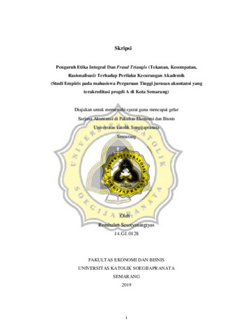 Pengaruh Etika Integral Dan Fraud Triangle (Tekanan, Kesempatan, Rasionalisasi) Terhadap Perilaku Kecurangan Akademik