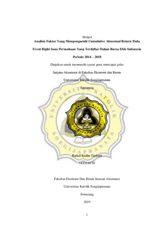 Garbani, Rafael Radite (2019) Analisis Faktor Yang Mempengaruhi Cumulative Abnormal Return Pada Event Right Issue Perusahaan Yang Terdaftar Dalam Bursa Efek Indonesia Periode 2014 – 2018. Other thesis, UNIKA SOEGIJAPRANATA SEMARANG.