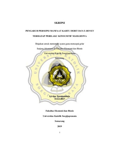 Tresnaatmaja, Levina (2019) PENGARUH PERSEPSI MANFAAT KARTU DEBIT DAN E-MONEY TERHADAP PERILAKU KONSUMTIF MAHASISWA. Other thesis, UNIKA SOEGIJAPRANATA SEMARANG.