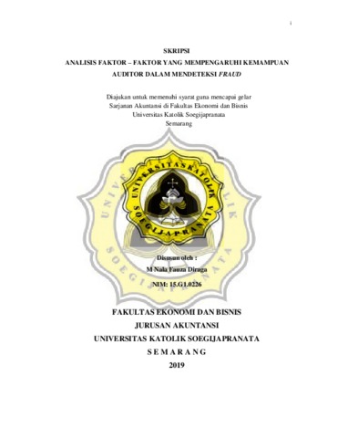 Diraga, M Nala Fauza (2019) ANALISIS FAKTOR – FAKTOR YANG MEMPENGARUHI KEMAMPUAN AUDITOR DALAM MENDETEKSI FRAUD. Other thesis, UNIKA SOEGIJAPRANATA SEMARANG.