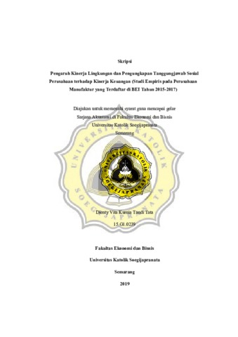 Tata, Dienty Vita Kurnia Tandi (2019) Pengaruh Kinerja Lingkungan dan Pengungkapan Tanggungjawab Sosial Perusahaan terhadap Kinerja Keuangan. Other thesis, UNIKA SOEGIJAPRANATA SEMARANG.