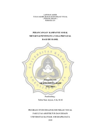 HADI, GRACIA NOVITA (2019) PERANCANGAN KAMPANYE SOSIAL MENGENAI PENTINGNYA YOGA PRENATAL BAGI IBU HAMIL. Other thesis, UNIKA SOEGIJAPRANATA SEMARANG.