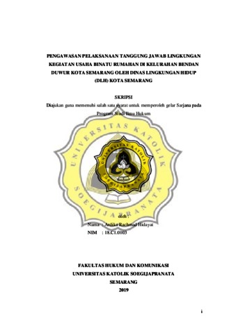 Hidayat, Ardika Rachmad (2019) PENGAWASAN PELAKSANAAN TANGGUNG JAWAB LINGKUNGAN KEGIATAN USAHA BINATU RUMAHAN DI KELURAHAN BENDAN DUWUR KOTA SEMARANG OLEH DINAS LINGKUNGAN HIDUP (DLH) KOTA SEMARANG. Other thesis, UNIKA SOEGIJAPRANATA SEMARANG.