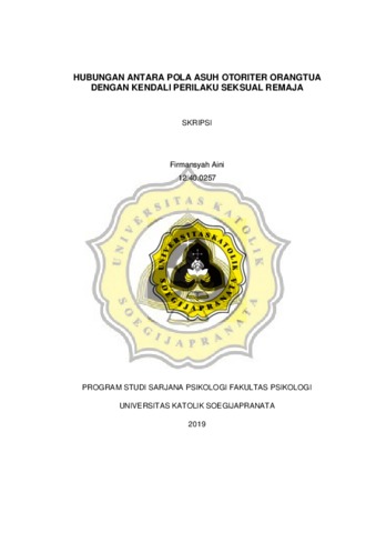 Aini, Firmansyah (2019) HUBUNGAN ANTARA POLA ASUH OTORITER ORANGTUA DENGAN KENDALI PERILAKU SEKSUAL REMAJA. Other thesis, UNIKA SOEGIJAPRANATA SEMARANG.