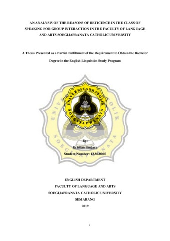 Sanjaya, Kristian (2019) AN ANALYSIS OF THE REASONS OF RETICENCE IN THE CLASS OF SPEAKING FOR GROUP INTERACTION IN THE FACULTY OF LANGUAGE AND ARTS SOEGIJAPRANATA CATHOLIC UNIVERSITY. Other thesis, UNIKA SOEGIJAPRANATA SEMARANG.