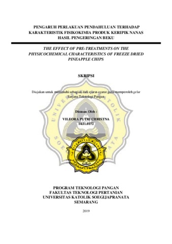 CHRISTNA, VILEORA PUTRI (2019) THE EFFECT OF PRE-TREATMENTS ON THE PHYSICOCHEMICAL CHARACTERISTICS OF FREEZE DRIED PINEAPPLE CHIPS. Other thesis, UNIKA SOEGIJAPRANATA SEMARANG.