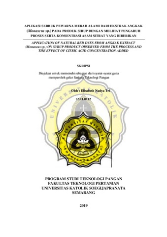 Tri A., Elisabeth Nadya (2019) APPLICATION OF NATURAL RED DYES FROM ANGKAK EXTRACT (Monascus sp.) ON SYRUP PRODUCT OBSERVED FROM THE PROCESS AND THE EFFECT OF CITRIC ACID CONCENTRATION ADDED. Other thesis, UNIKA SOEGIJAPRANATA SEMARANG.