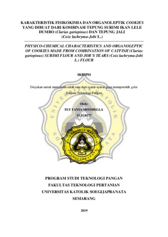 MISSHELLA, SUI TANIA (2019) PHYSICO-CHEMICAL CHARACTERISTICS AND ORGANOLEPTIC OF COOKIES MADE FROM COMBINATION OF CATFISH (Clarias gariepinus) SURIMI FLOUR AND JOB’S TEARS (Coix lachryma-Jobi L.) FLOUR. Other thesis, UNIKA SOEGIJAPRANATA SEMARANG.