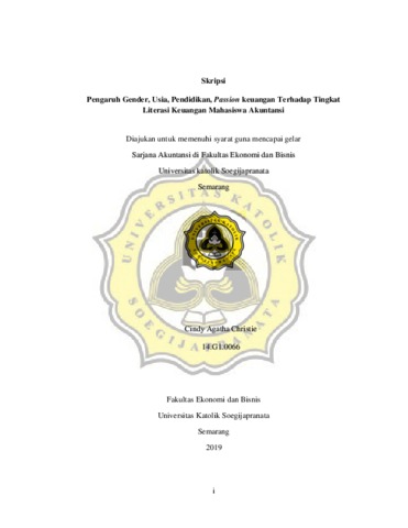 Christie, Cindy Agatha (2019) Pengaruh Gender, Usia, Pendidikan, Passion keuangan Terhadap Tingkat Literasi Keuangan Mahasiswa Akuntansi. Other thesis, UNIKA SOEGIJAPRANATA SEMARANG.