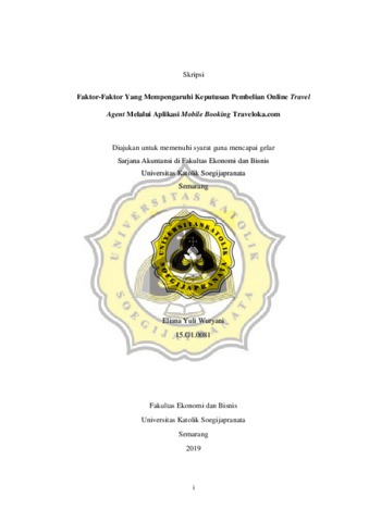 Wuryani, Eliana Yuli (2019) Faktor-Faktor Yang Mempengaruhi Keputusan Pembelian Online Travel Agent Melalui Aplikasi Mobile Booking Traveloka.com. Other thesis, UNIKA SOEGIJAPRANATA SEMARANG.