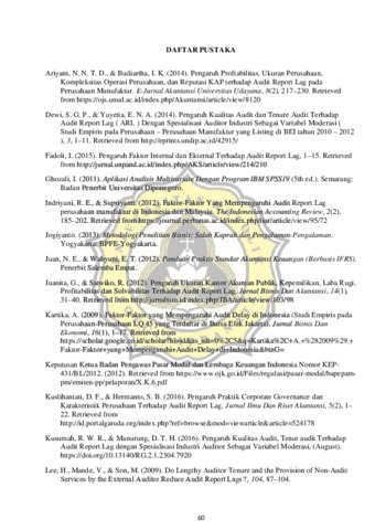 WIBISONO, ANDRE AKBAR (2019) ANALISIS FAKTOR-FAKTOR YANG MEMPENGARUHI AUDIT REPORT LAG (ARL). Other thesis, UNIKA SOEGIJAPRANATA SEMARANG.