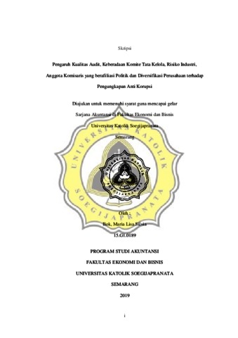 Silvia, Bok, Maria Lisa (2019) Pengaruh Kualitas Audit, Keberadaan Komite Tata Kelola, Risiko Industri, Anggota Komisaris yang berafiliasi Politik dan Diversifikasi Perusahaan terhadap Pengungkapan Anti Korupsi. Other thesis, UNIKA SOEGIJAPRANATA SEMARANG.