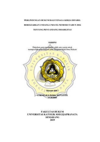 SEPTANTO, CORNELIUS INDRA (2019) PERLINDUNGAN HUKUM BAGI TENAGA KERJA DIFABEL BERDASARKAN UNDANG-UNDANG NOMOR 8 TAHUN 2016 TENTANG PENYANDANG DISABILITAS. Other thesis, UNIKA SOEGIJAPRANATA SEMARANG.