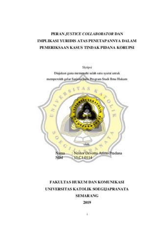 Pradana, Nestor Devotta Aristo (2019) PERAN JUSTICE COLLABORATOR DAN IMPLIKASI YURIDIS ATAS PENETAPANNYA DALAM PEMERIKSAAN KASUS TINDAK PIDANA KORUPSI. Other thesis, UNIKA SOEGIJAPRANATA SEMARANG.