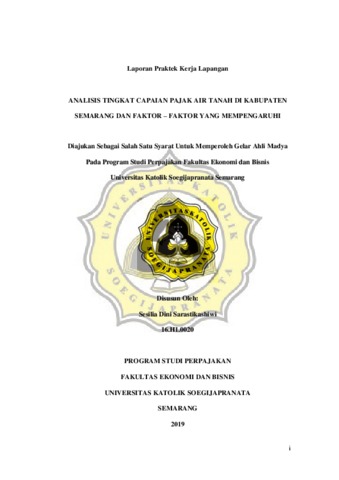 Sarastikashiwi, Sesilia Dini (2019) ANALISIS TINGKAT CAPAIAN PAJAK AIR TANAH DI KABUPATEN SEMARANG DAN FAKTOR – FAKTOR YANG MEMPENGARUHI. Project Report. Fakultas Ekonomi Dan Bisnis Unika Soegijapranata, Semarang. (Unpublished)