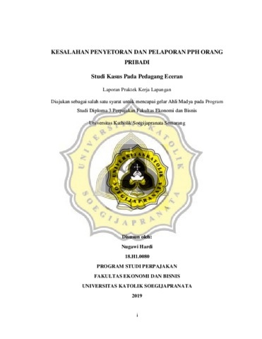 Hardi, Nugawi (2019) KESALAHAN PENYETORAN DAN PELAPORAN PPH ORANG PRIBADI. Project Report. Fakultas Ekonomi Dan Bisnis Unika Soegijapranata, Semarang. (Unpublished)