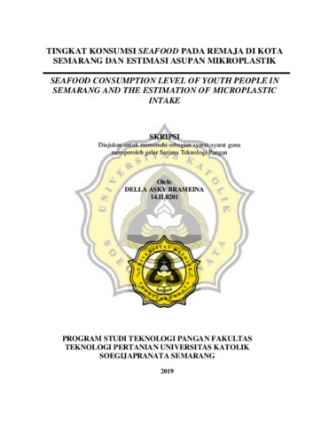 BRAMEINA, DELLA ASKY (2019) TINGKAT KONSUMSI SEAFOOD PADA REMAJA DI KOTA SEMARANG DAN ESTIMASI ASUPAN MIKROPLASTIK. SEAFOOD CONSUMPTION LEVEL OF YOUTH PEOPLE IN SEMARANG AND THE ESTIMATION OF MICROPLASTIC INTAKE. Other thesis, UNIKA SOEGIJAPRANATA SEMARANG.