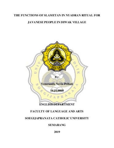 Prihati, Veneranda Novia (2019) THE FUNCTIONS OF SLAMETAN IN NYADRAN RITUAL FOR JAVANESE PEOPLE IN DIWAK VILLAGE. Other thesis, UNIKA SOEGIJAPRANATA SEMARANG.