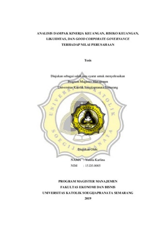 Karlina, Yunita (2019) ANALISIS DAMPAK KINERJA KEUANGAN, RISIKO KEUANGAN, LIKUIDITAS, DAN GOOD CORPORATE GOVERNANCE TERHADAP NILAI PERUSAHAAN. Masters thesis, UNIKA SOEGIJAPRANATA SEMARANG.